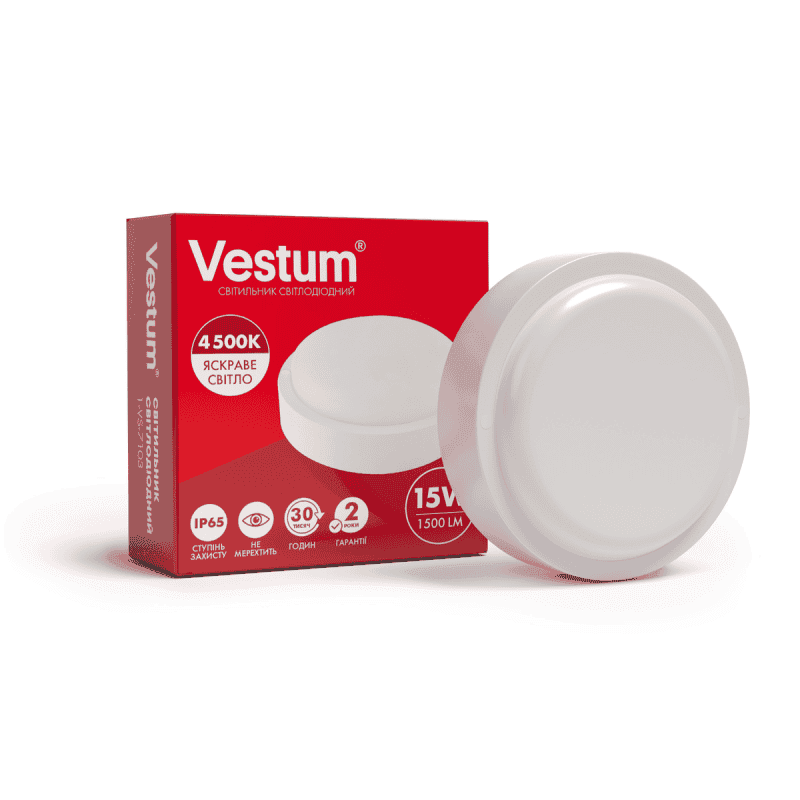 Наименование: Светильник ЖКХ LED 15W КРУГ 4500K 220V VESTUM